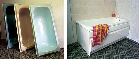 Akril bélésDe, mint kiderült, a zománc-bevonat nem az egyetlen módja annak, helyreállítása egy régi fürdő. Van egy másik lehetőség - meg egy régi kád egy új, akril bélés. Furcsa, de ez volt a legnagyobb nehézség találtam Moszkvában csak egy cég, KFT. "Mosquit amely részt vesz a gyártását, telepítését, ezek a választásával.