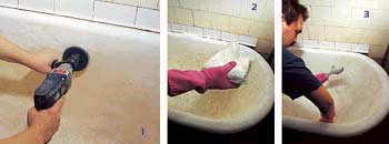 - Először is, a belső felülete a fürdő tisztítani a régi zománc. Ehhez ecset vagy szivacs alkalmazott por írja be a memolux" (de nem a klór tartalmú összetétel), illetve közvetlenül a por, hogy készítsen egy alapos tisztítást egy csiszoló kő. Majd vízzel mossuk ki csiszoló morzsa, szappan film.